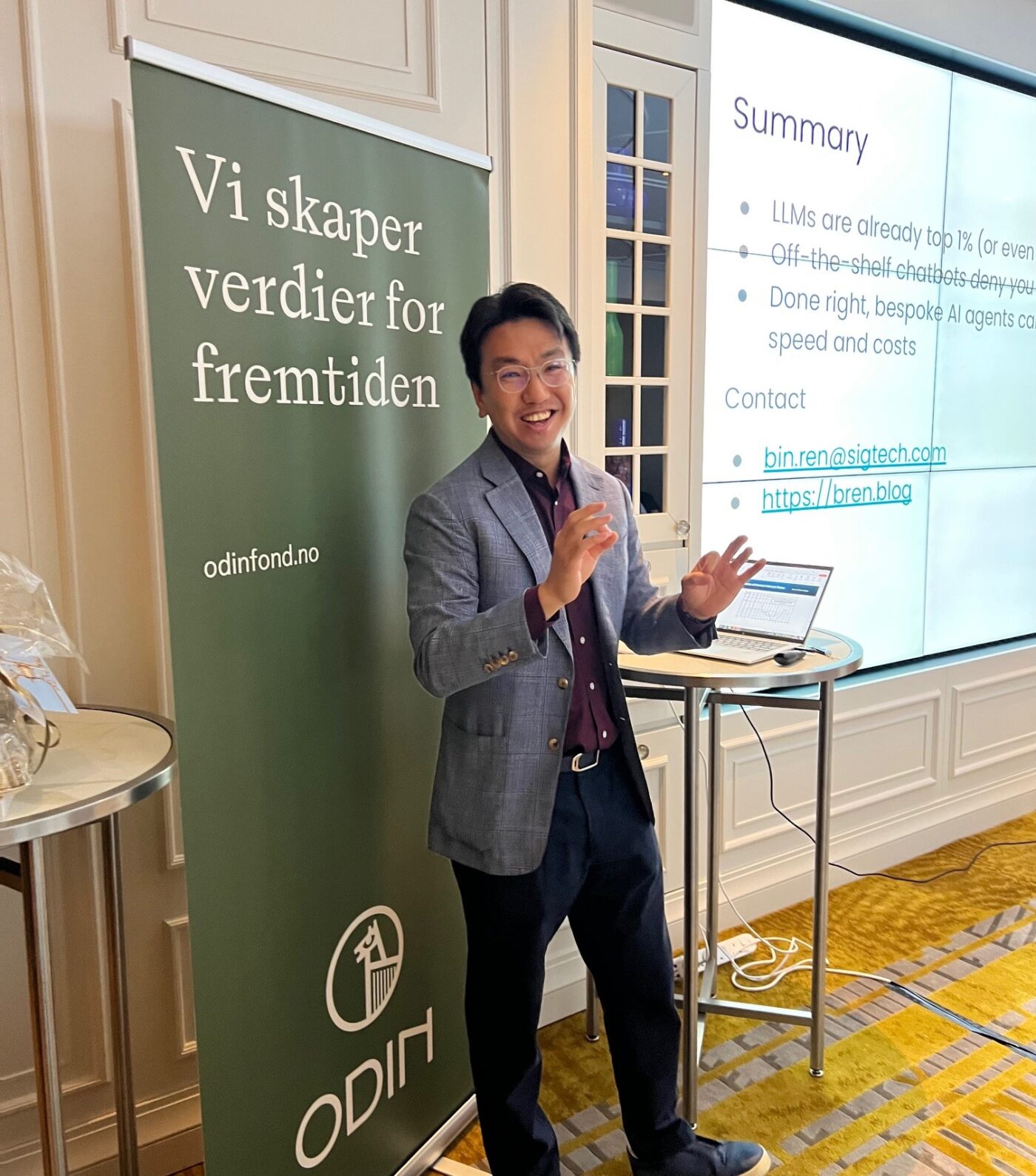 Bin Ren är grundare och vd för det Londonbaserade fintechbolaget SigTech, som utvecklar avancerade analysverktyg och AI-lösningar. På Odin Investment Conference 2025 beskrev han hur generativ AI håller på att förändra finansbranschen i grunden – och varför den största revolutionen inte handlar om teknik, utan om människors förmåga att använda den rätt.